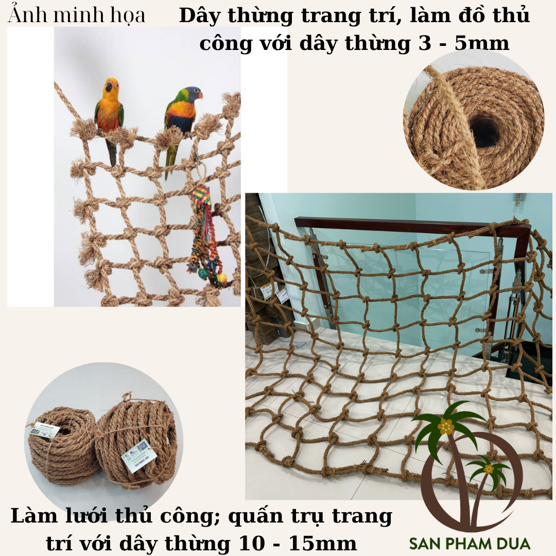 -Dây thừng dừa làm từ sợi xơ dừa dệt thủ công 100% từ chỉ xơ dừa; sợi xơ dừa chịu nắng mưa tốt, bền bỉ giữ cho trang trí của bạn được lâu dài