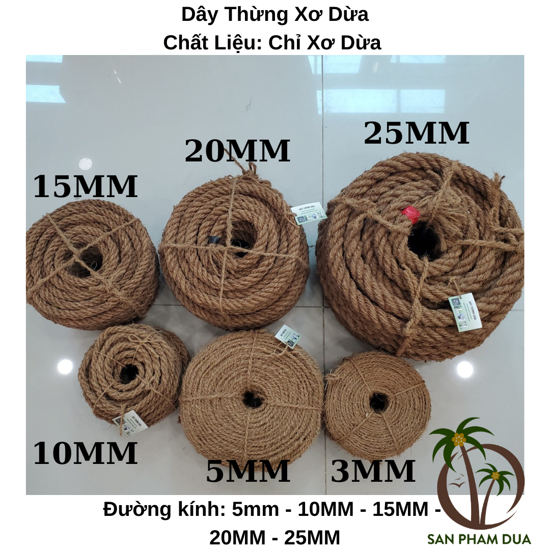 Sử Dụng: Dây thừng dừa dùng làm đồ thủ công, là dây thừng decor trang trí trong nhà và ngoài trời; làm xích đu ( 20mm- 25mm), thả trần,…